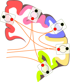 Pour modéliser le cerveau dans son ensemble, une approche complémentaire consiste donc à changer d’échelle, pour se placer au niveau des structures cérébrales. On peut alors envisager le cerveau comme un réseau de diverses populations neuronales dont l’activité individuelle peut être résumée au moyen d’équations.